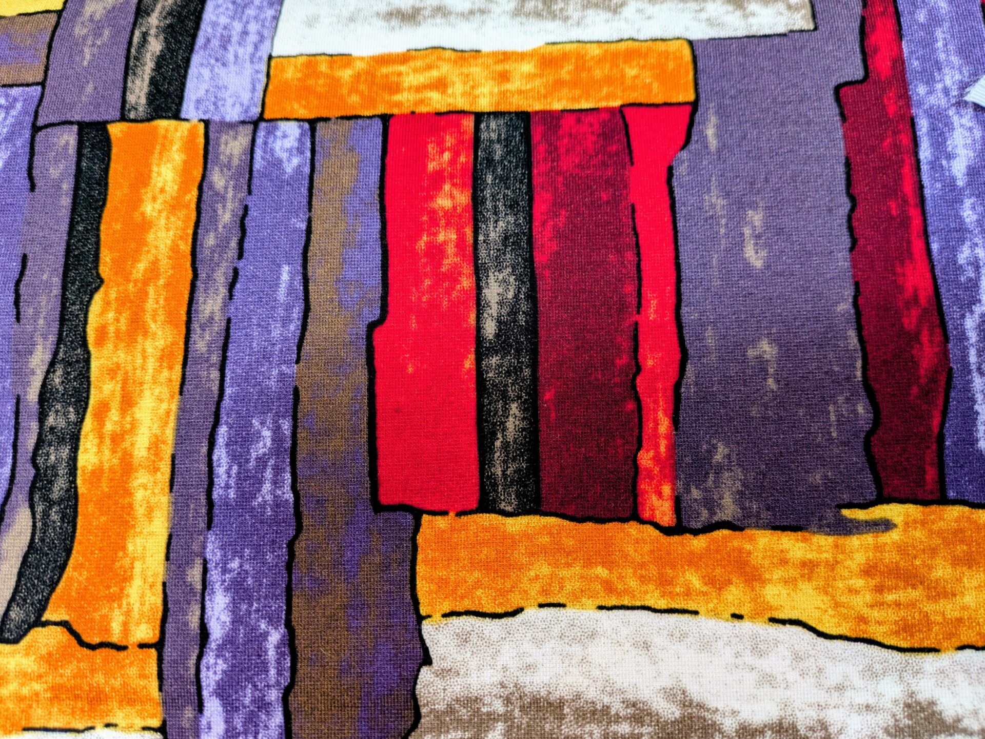 This is a bright multi-coloured design of abstract geometric shapes.
