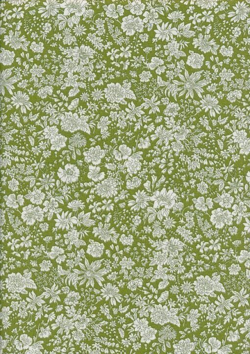 This is the Caterpillar colourway, a soft green with a tiny floral design in soft white. Designed as a blender, but also ready to take centre stage in your projects.