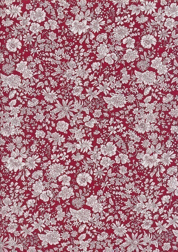 This is the Crimson colourway with a tiny floral design in soft white. Designed as a blender, but also ready to take centre stage in your projects.